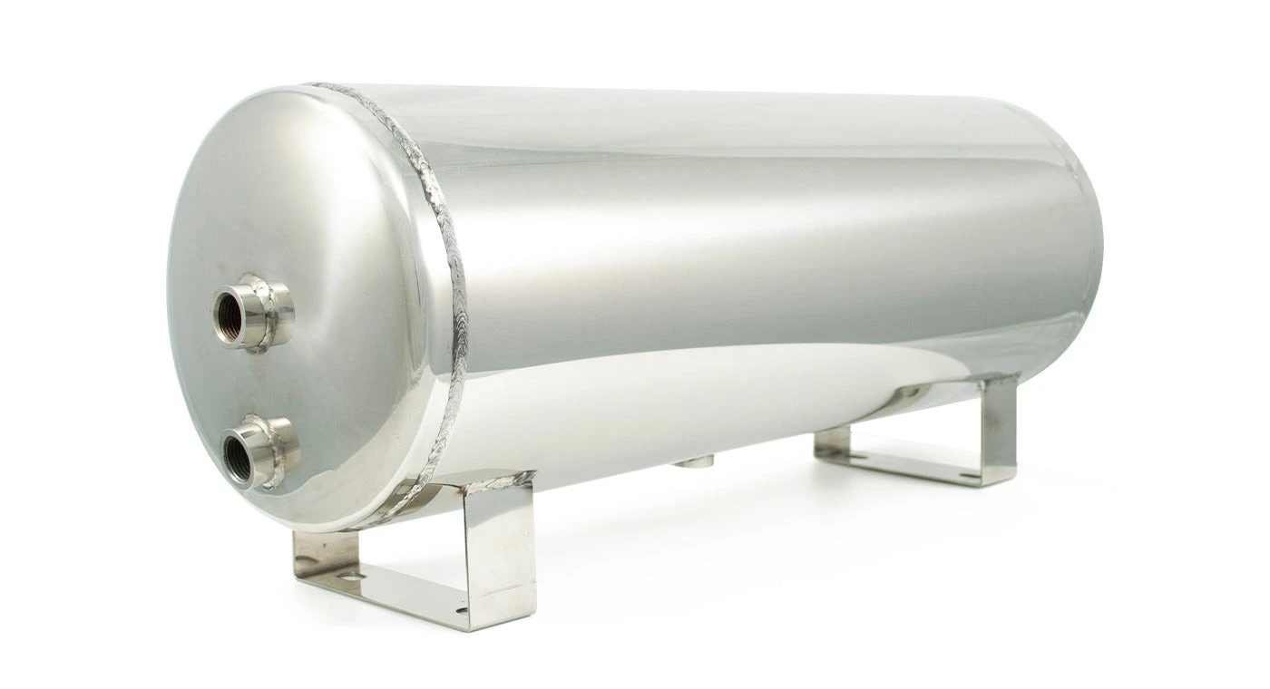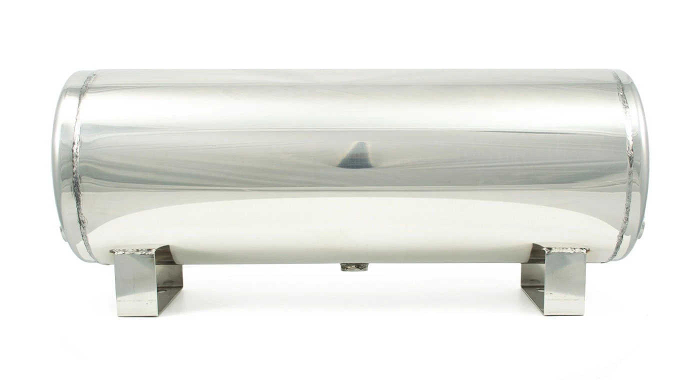 This pristine air tank is meticulously crafted from stainless steel, which bestows a remarkable resistance to corrosion and rust, ensuring a long-lasting companion for your pneumatic applications like air horns, air suspension, or onboard air systems. The black powder coat finish amplifies its aesthetic allure while adding an extra layer of protection against the elements.