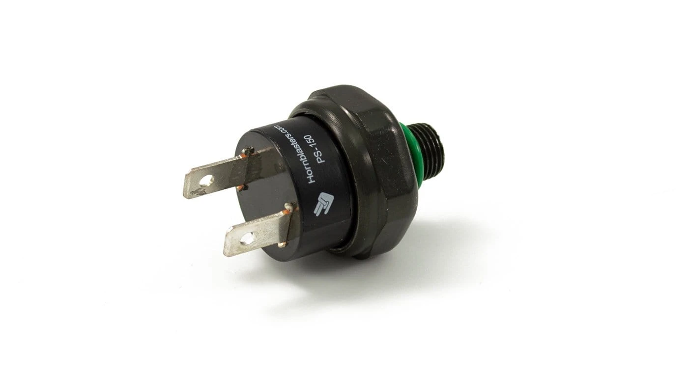 Looking for a reliable pressure switch for your 12 or 24-volt air compressor? Look no further than the HornBlasters Pressure Switch! This essential switch turns the compressor on and off automatically, depending on the pressure in the tank. The pressure switch will turn the air compressor on at the lower end of the pressure range and once it reaches the higher end it will turn the compressor off.