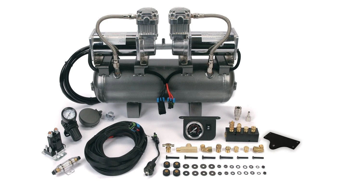 Need a powerful and dependable onboard air system? Look no further than the Viair 200 PSI High-Pressure Bolt-On Platform! Featuring dual constant duty compressors and a 2-gallon tank, it’s perfect for air horns, train horns, suspension systems, air locking differentials, air seats, and even inflating tires up to 40 inches.