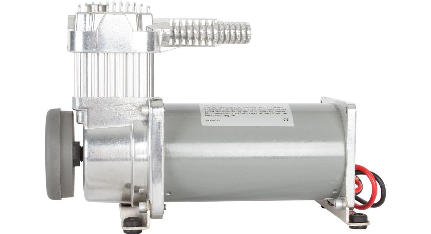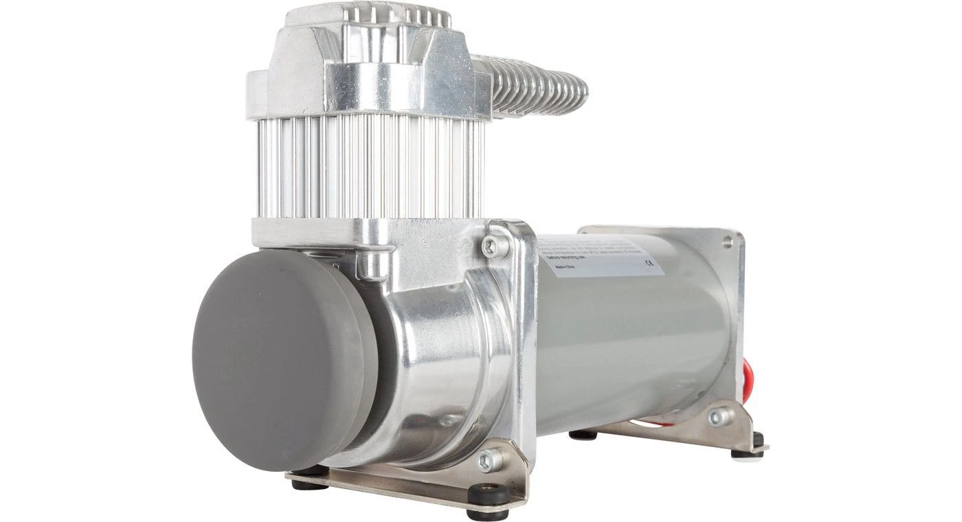 Who says heavy-duty work can’t be done with a smile? Meet the Viair 330C IG, your industrial-strength friend ready to tackle even the harshest of conditions. With the power to fill up to a 5-gallon tank, this constant-duty air compressor is perfect for powering air horns, air suspension, air tools and more! And the best part? It only pulls 16 amps while producing 1.06 CFM, recharging a 5-gallon tank from 110-145 PSI in just 3 minutes and 30 seconds. The Viair 330C IG features a newly-developed head design for better heat dissipation and a separate stainless steel braided PTFE-lined leader hose and check valve assembly to protect against high amperage restarts.
