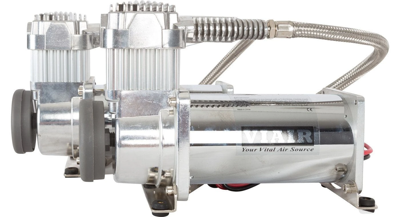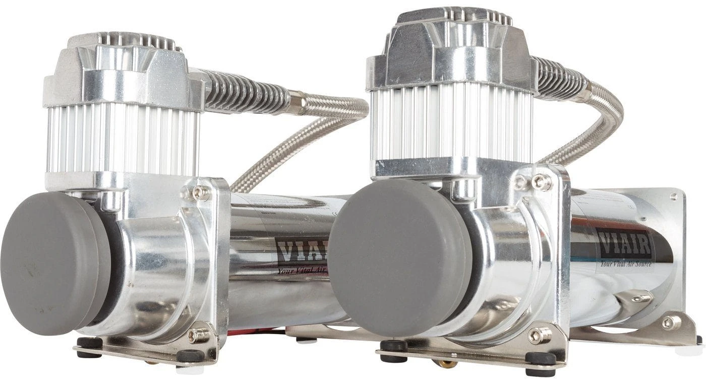 Get ready to blast off into the world of fast-filling air compressors with the Viair 400C Dual Pack! This speedster duo delivers a combined 4.55 CFM and only maxes out at 60 amps, meaning you’ll have the air you need, when you need it. Whether you’re powering your train horn or suspension system, or just need to inflate a tire in a pinch, these nimble compressors will have you covered. With the fastest recharge times of any Viair dual pack, the 400C’s can fill a 2-gallon tank from 110-145 PSI in 20 seconds and a 5-gallon tank in just 52 seconds.